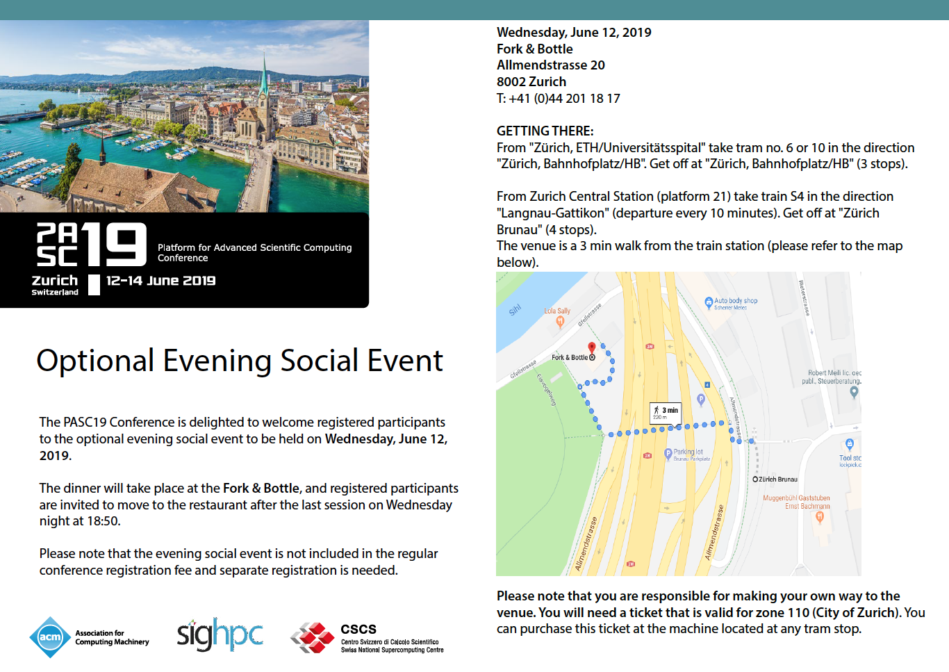 The PASC19 Conference is delighted to welcome registered participants to the optional evening social event to be held on Wednesday, June 12, 2019.